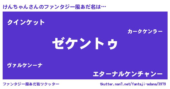 | 女子向けラノベタイトル風あだ名 | 『けんちゃんアンティーク』 |