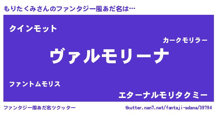 | 男性向けラノベタイトル風あだ名 | 『この素晴らしい世界にもりたくみを!』 |