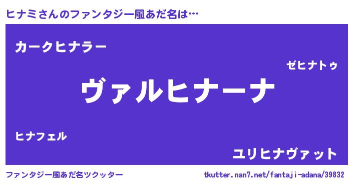 | 男性向けラノベタイトル風あだ名 | 『この素晴らしい世界にヒナミを!』 |