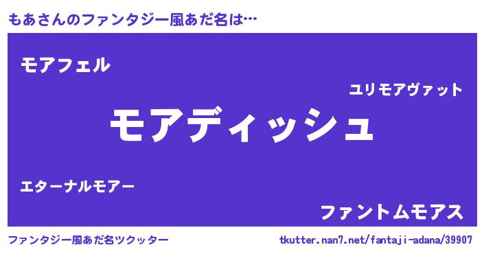 | 男性向けラノベタイトル風あだ名 | 『もあという概念が存在しない退屈な世界 』 |