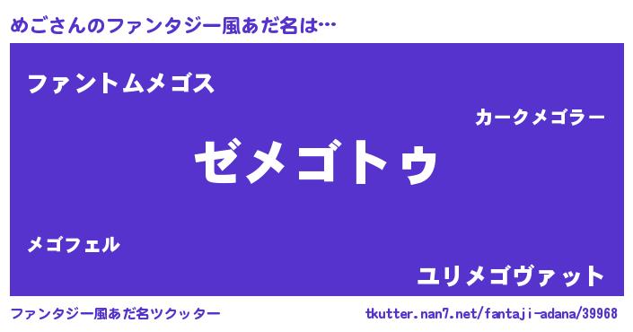 | 男性向けラノベタイトル風あだ名 | 『魔法科高校のめご』『メゴスレイヤー』 |
