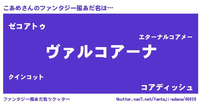 | 男性向けラノベタイトル風あだ名 | 『この素晴らしい世界にこあめを!』 |