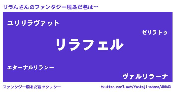| 男性向けラノベタイトル風あだ名 | 『リラんの憂鬱』『魔弾の王とリラん』 |