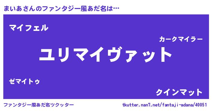 | 胡散臭い通販商品みたいなあだ名 | 『モテモテ間違いなし水晶球…その名も「まいあ」』 |