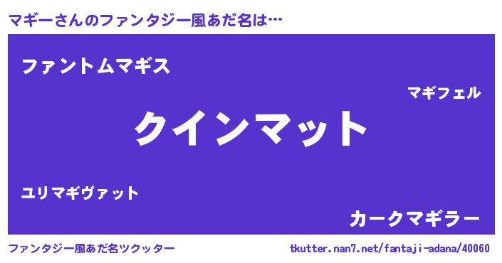 | ヒーロー風カッコイイあだ名 | 『慈愛の使者マギー』『暗黒騎士マギ』 |