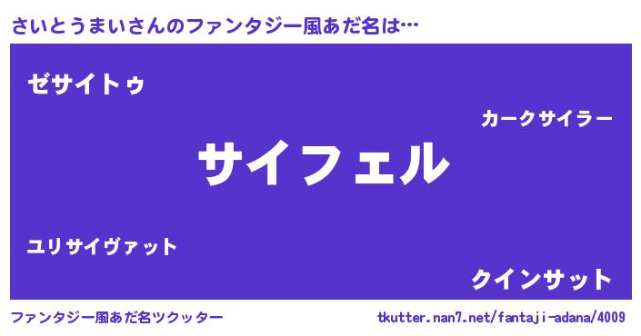 | 男性向けラノベタイトル風あだ名 | 『サイトウマイアートオンライン』 |