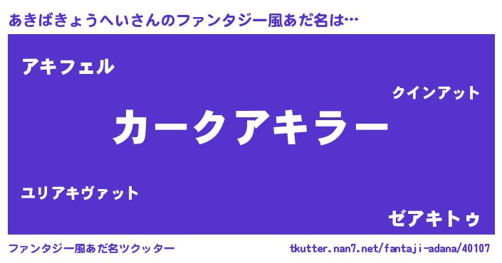 | 胡散臭い通販商品みたいなあだ名 | 『モテモテ間違いなし霊験あらたかなお札…その名も「あきばきょうへい」』 |