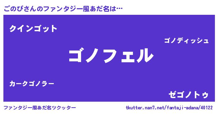 | 男性向けラノベタイトル風あだ名 | 『ゴノピアートオンライン』 |