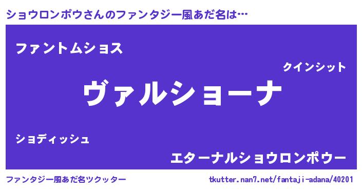 | 男性向けラノベタイトル風あだ名 | 『この素晴らしい世界にショウロンポウを!』 |