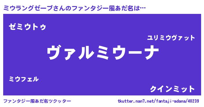 | ヒーロー風カッコイイあだ名 | 『仮面ミウダー』『炎刃騎士ミウ』 |
