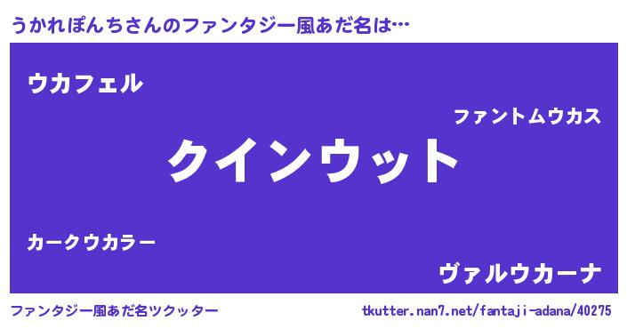 | ポケモン風あだ名 | 『ウックウザ』『ウカチュウ』 |