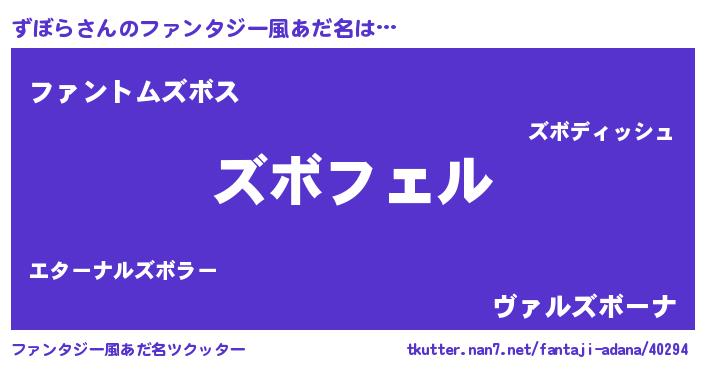 | ヒーロー風カッコイイあだ名 | 『スーパーズボラ』『天弓騎士ズボ』 |