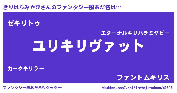 | 恥ずかしいあだ名 | 『キリハラミヤビデラックス』『きりちん』 |