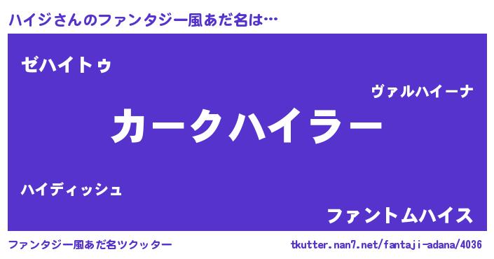 | ヒーロー風カッコイイあだ名 | 『究極戦士ハイジ』『暗黒騎士ハイ』 |
