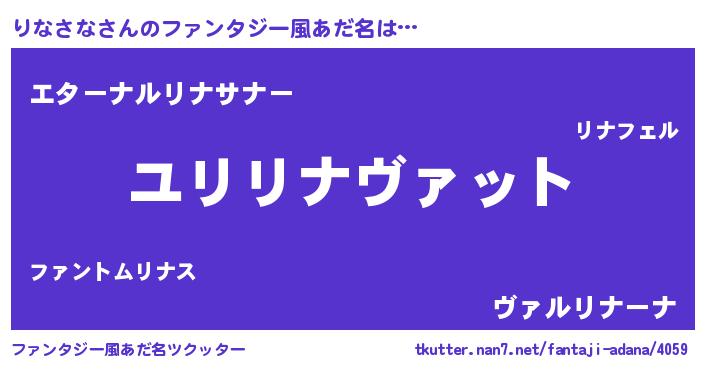 | 男性向けラノベタイトル風あだ名 | 『りなさなに滅ぼされるだけの簡単なお仕事です』 |