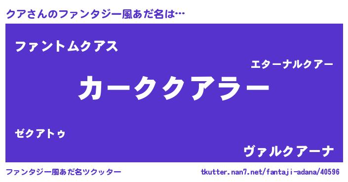 | 男性向けラノベタイトル風あだ名 | 『緋弾のクア』『魔弾の王とクア』 |