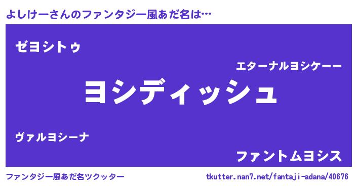 | 意味不明あだ名 | 『永久保存よしけー』『自称よしけー』 |