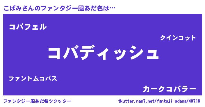 | 男性向けラノベタイトル風あだ名 | 『こばみに滅ぼされるだけの簡単なお仕事です』 |