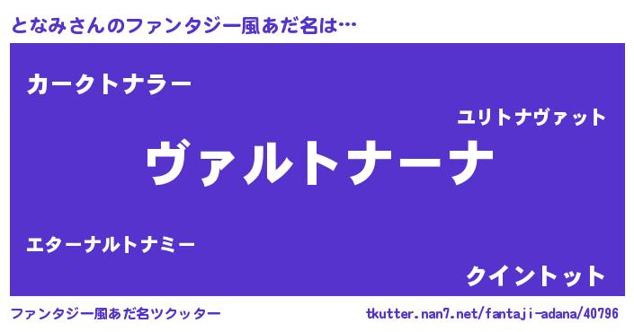 | 男性向けラノベタイトル風あだ名 | 『この素晴らしい世界にとなみを!』 |