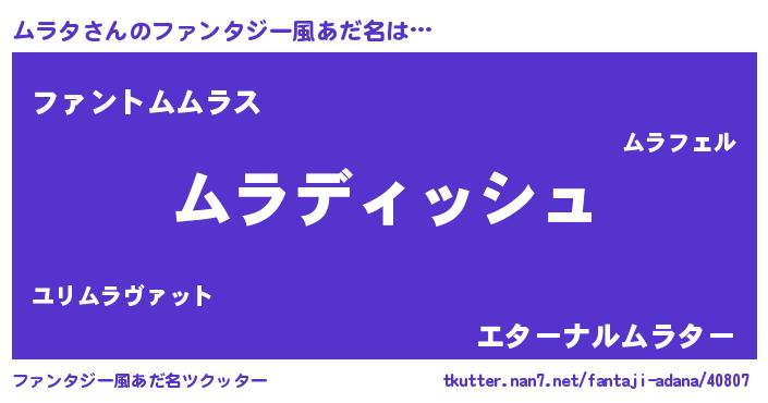 | 意味不明あだ名 | 『永久保存ムラタ』『ムラタフォーエバー』 |