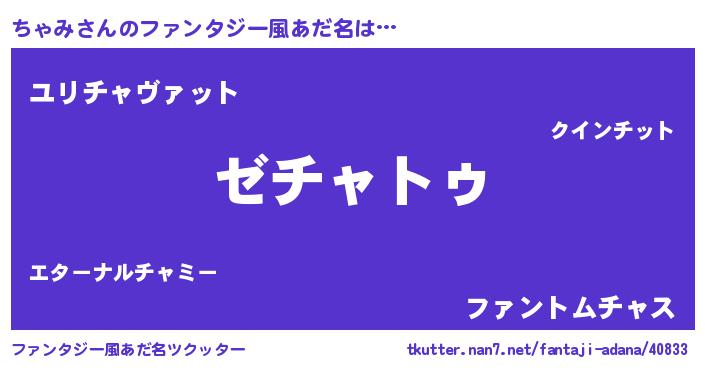 | ヒーロー風カッコイイあだ名 | 『最強戦士チャミ』『炎刃騎士チャ』 |