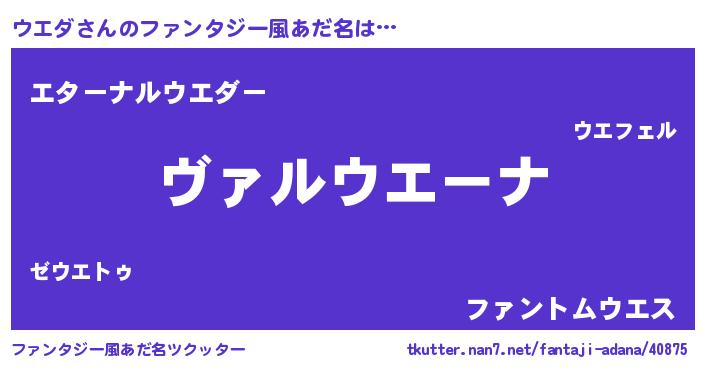 | 男性向けラノベタイトル風あだ名 | 『魔弾の王とウエダ』『ウエダの憂鬱』 |