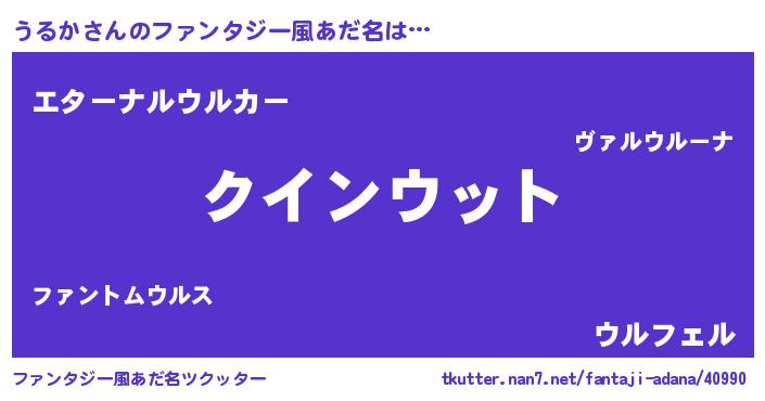 | 女子向けラノベタイトル風あだ名 | 『うるか恋絵巻』『うるかの雑貨屋さん』 |