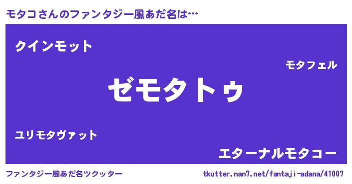 | 女子向けラノベタイトル風あだ名 | 『モタコなんてお断りですっ。』 |