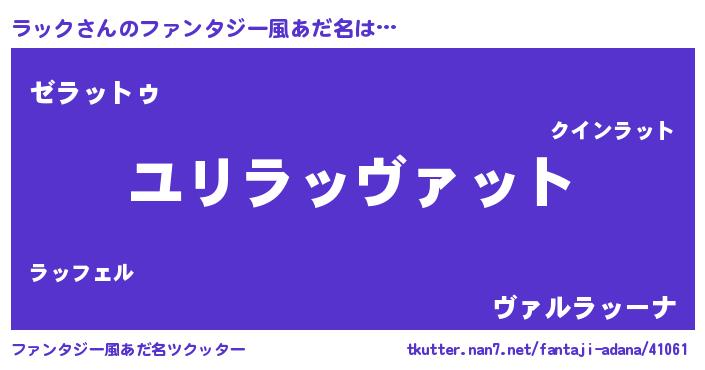 | ヘコむあだ名 | 『ラッふぇ~』『ラック(震え声)』 |