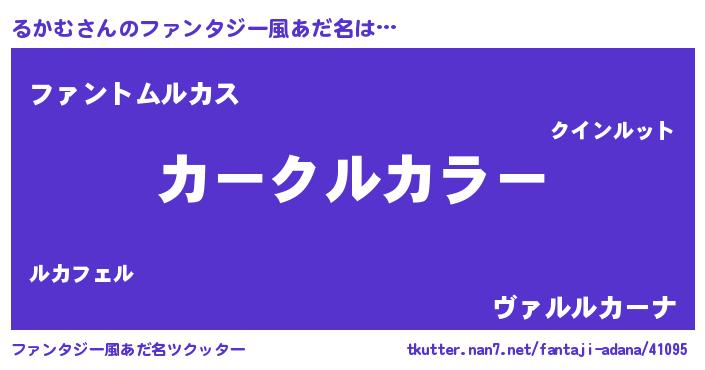 | ヘコむあだ名 | 『るか太郎』『るかっふぃ~』 |
