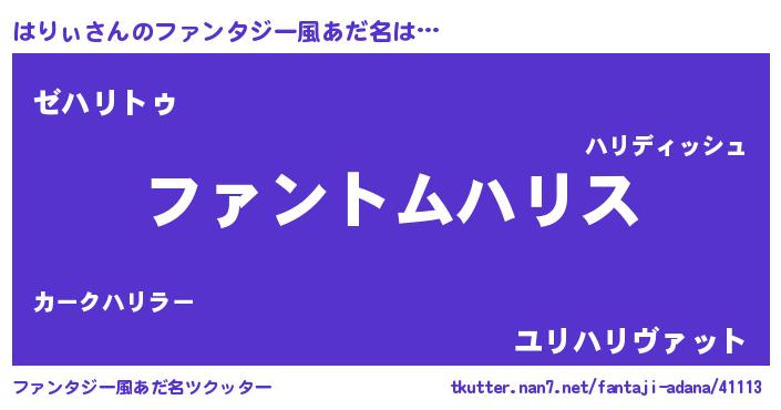 | 女子向けラノベタイトル風あだ名 | 『はりぃは平凡を望む』 |
