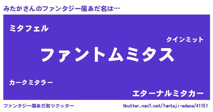 | 自動車の名前っぽいあだ名 | 『ミルトタパン』『ミタティマ』 |