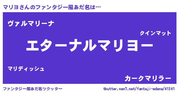 | 女子向けラノベタイトル風あだ名 | 『マリヨ伯爵の花嫁』『マリヨ恋絵巻』 |