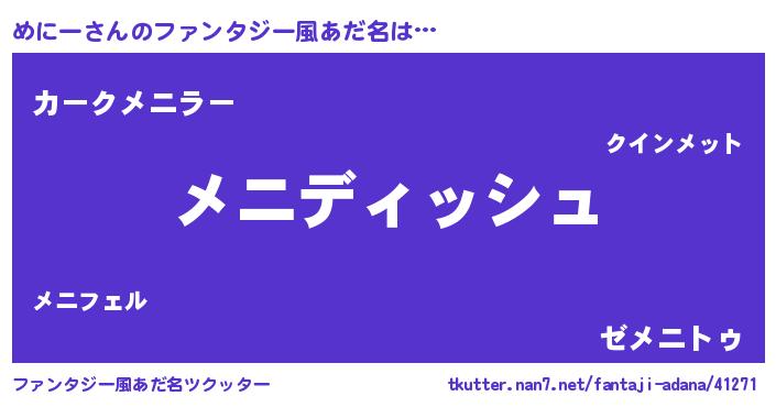 | 意味不明あだ名 | 『永久保存めにー』『自称めにー』 |