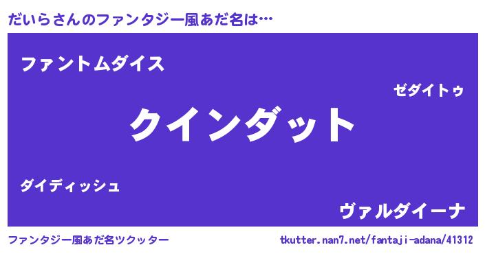 | ヘコむあだ名 | 『だいぷりん』『だいら(爆)』『豆乳』 |