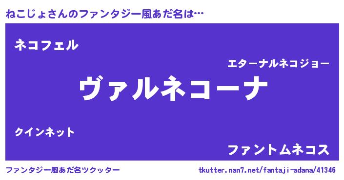 | 女子向けラノベタイトル風あだ名 | 『乙女ゲームの破滅フラグしかない悪役ねこじょに転生してしまった…』 |