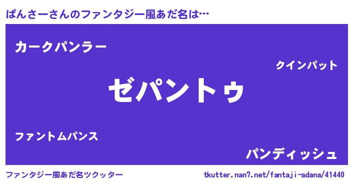 | 男性向けラノベタイトル風あだ名 | 『Re:ぱんさーから始める異世界生活』 |