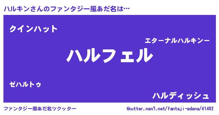 | 意味不明あだ名 | 『ペロリンハルキン』『永久保存ハルキン』 |