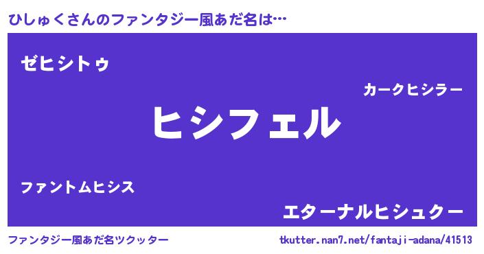 | 意味不明あだ名 | 『ペロリンひしゅく』『自称ひしゅく』 |