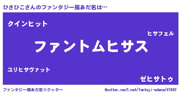 | 男性向けラノベタイトル風あだ名 | 『ダンジョンにひさひこを求めるのは間違っているだろうか』 |