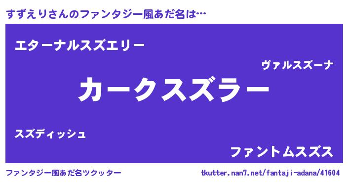 | ヒーロー風カッコイイあだ名 | 『ウルトラすずえりマン』『魔戒騎士スズ』 |