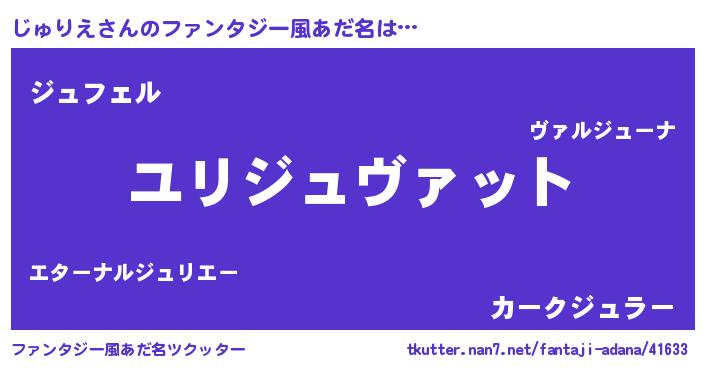 | 男性向けラノベタイトル風あだ名 | 『転生したらじゅりえだった件』 |