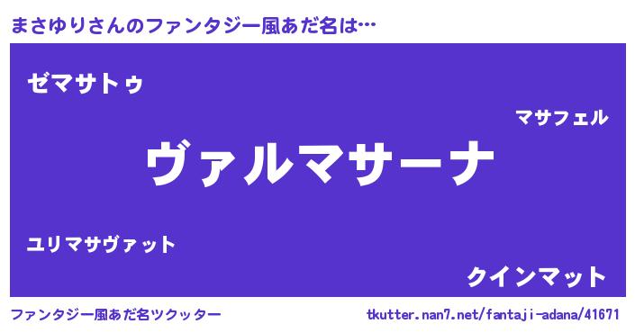 | 男性向けラノベタイトル風あだ名 | 『魔弾の王とまさゆり』『まさゆりの憂鬱』 |