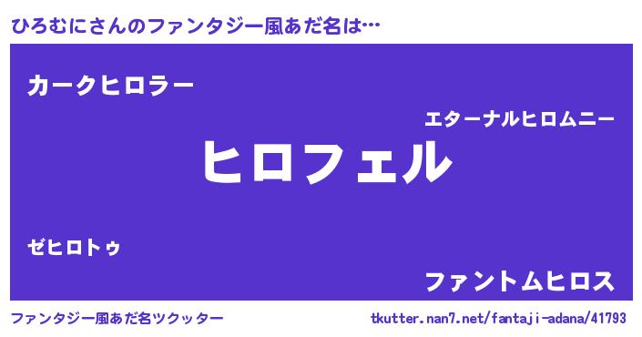| 男性向けラノベタイトル風あだ名 | 『ひろむにに滅ぼされるだけの簡単なお仕事です』 |