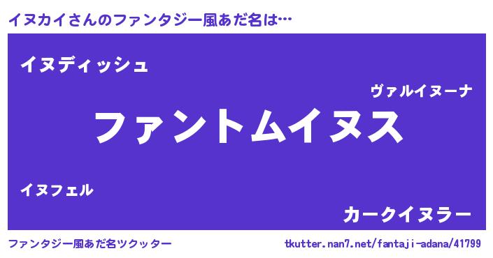 | ポケモン風あだ名 | 『ヒイヌカイ』『イヌゴンZ』 |