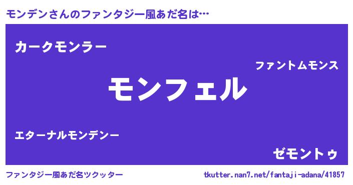 | 男性向けラノベタイトル風あだ名 | 『モンデンの憂鬱』 |