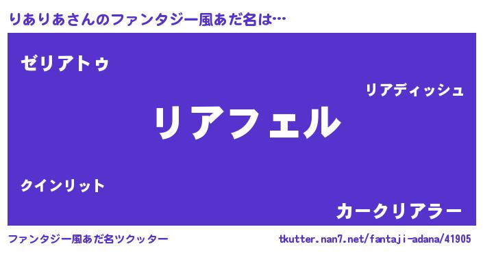 | ヘコむあだ名 | 『りあっふぃ~』『りありあ(笑)』 |