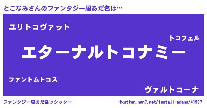 | 意味不明あだ名 | 『とこなみフォーエバー』 |