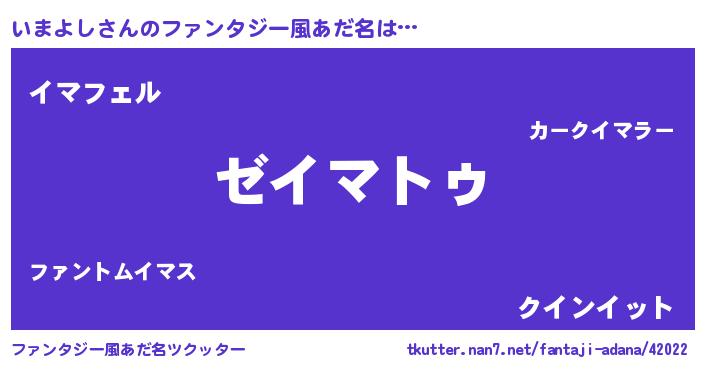 | ヒーロー風カッコイイあだ名 | 『ウルトラ戦士イマヨシ』『幻影騎士イマ』 |