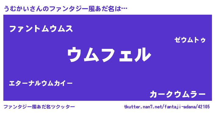 | 意味不明あだ名 | 『ペロリンうむかい』『自称うむかい』 |